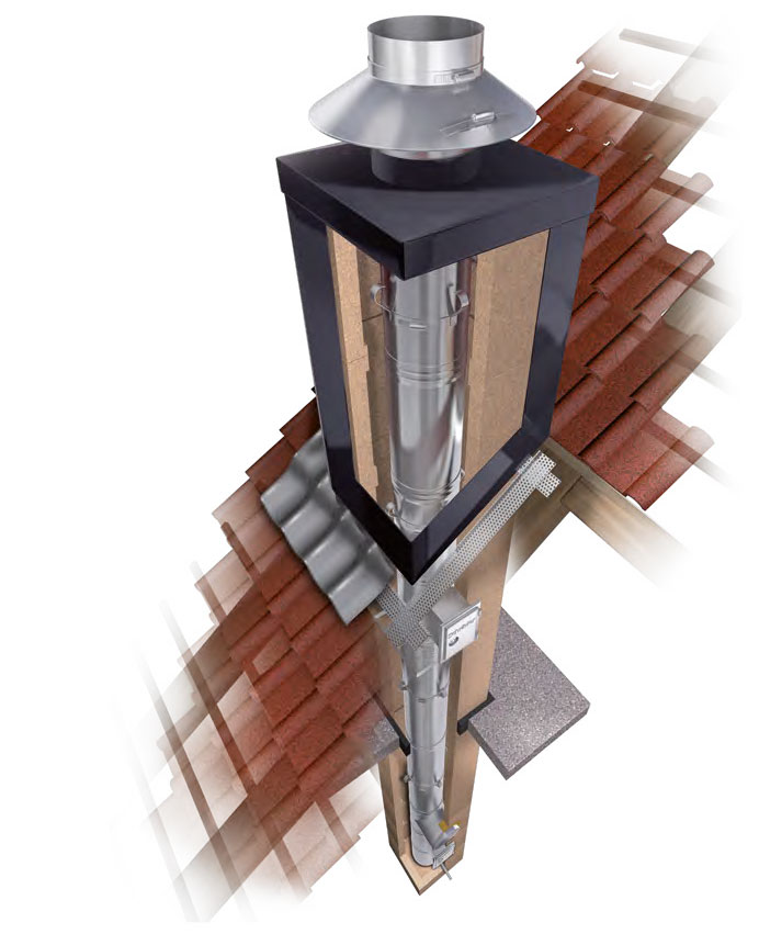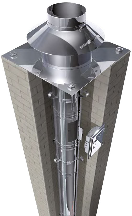 Doppelwandiges Schornsteinsystem für Regelfeuerstätten im Über- und Unterdruckbereich.